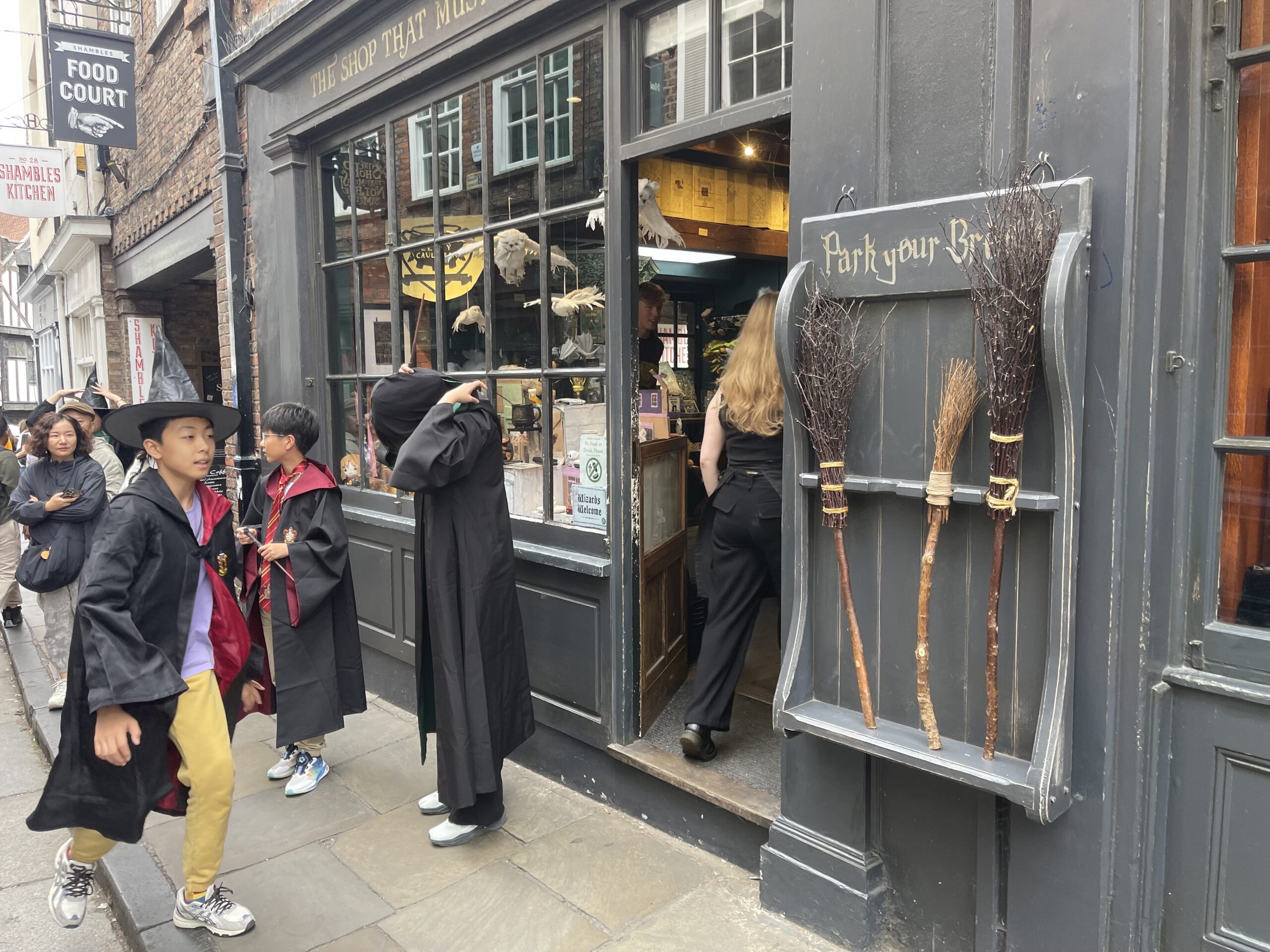 I was told to look out for ‘The Shambles’ (which I constantly mistakenly called The Crumbles), a gorgeous tight alley of shops with medieval overhanging second and third floors. Unsurprisingly a famous wizard themed shop (but not entirely licensed) had popped up there with brooms and all the knicks-knacks one might associate with Pig-Verucca’s School for Witchcraft and Wizardry…